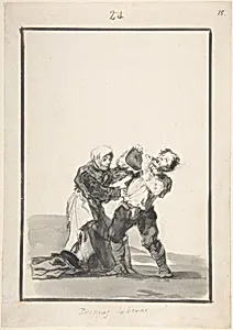 'You'll See Later'; a man drinking, a woman trying to stop him; page 24 from the Black Border Album (E) by Goya (Francisco de Goya y Lucientes)