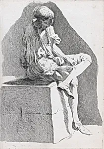 Youth Examining his Stocking (Young Boy of the People), pl. XVI from "Recueil de caricatures"